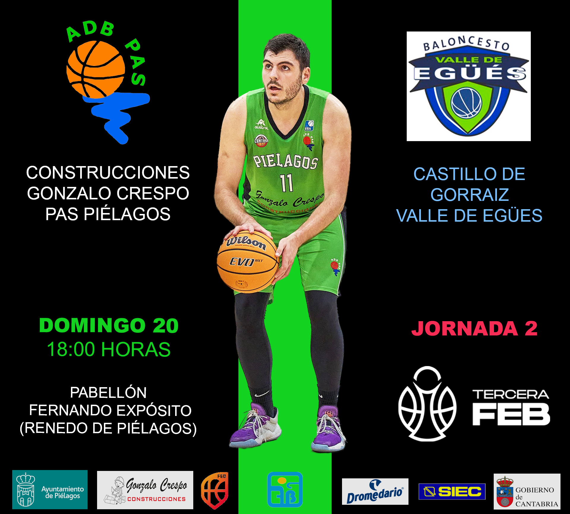 Mañana, domingo 20 de octubre, el Construcciones Gonzalo Crespo Pas Piélagos disputará su segundo partido de la Liga Tercera FEB 2024-2025 (anteriormente Liga EBA). En esta ocasión, se enfrentará en la segunda jornada al equipo navarro Castillo de Gorraiz Valle de Egües. El partido tendrá lugar a las 18:00 horas en el Pabellón Fernando Expósito de Renedo de Piélagos.