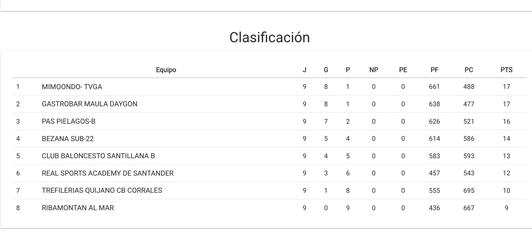 Real Sports Academy de Santander 59 – 68 Pas Piélagos B
