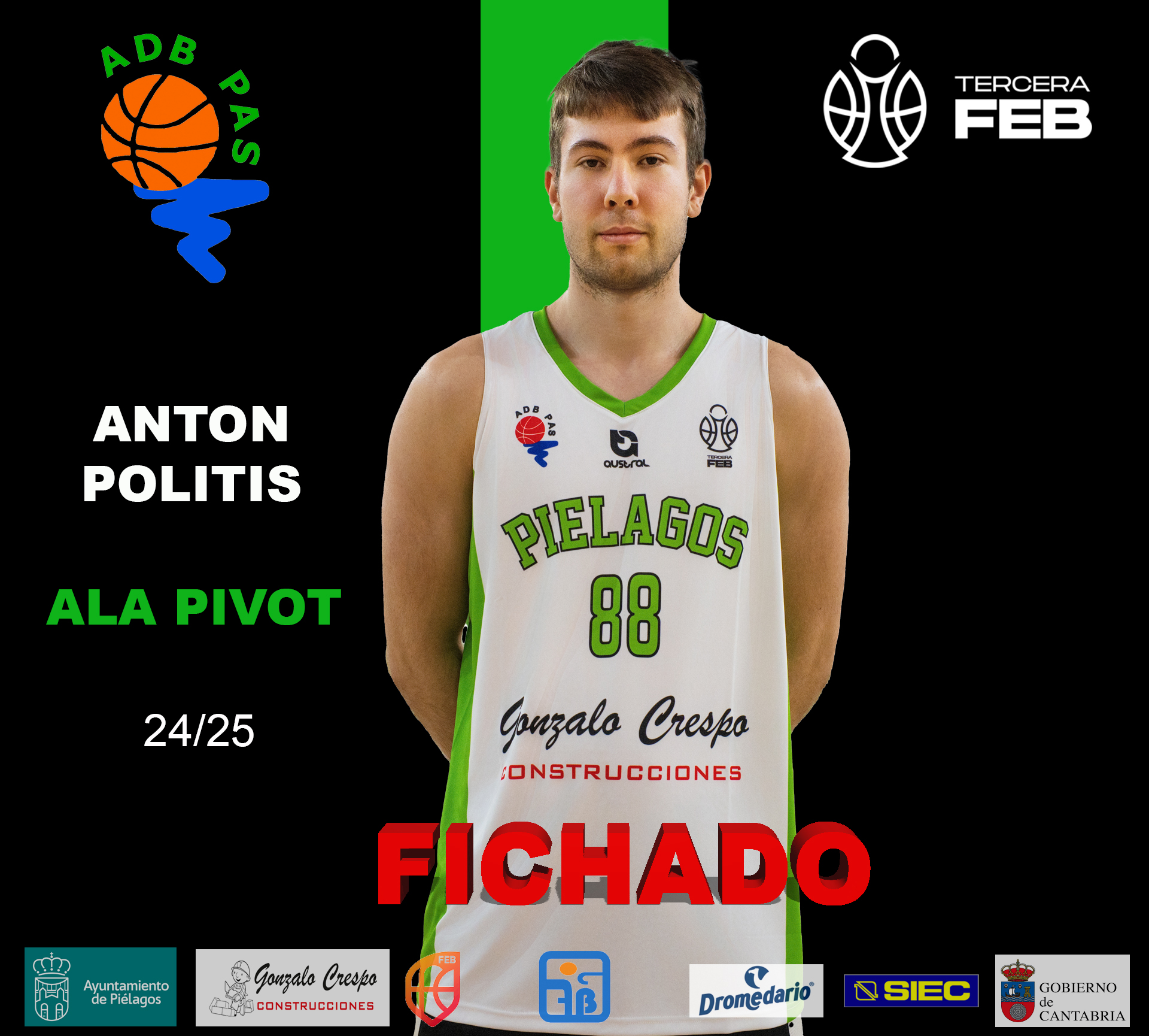 El nuevo fichaje del equipo de Piélagos destaca por su habilidad en el rebote y su dominio del juego interior, características que aportarán solidez al conjunto. ¡Bienvenido, Antón!